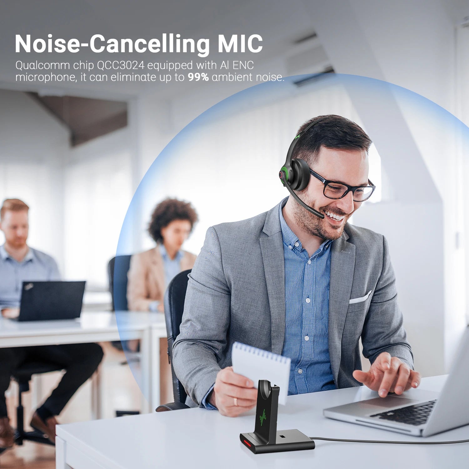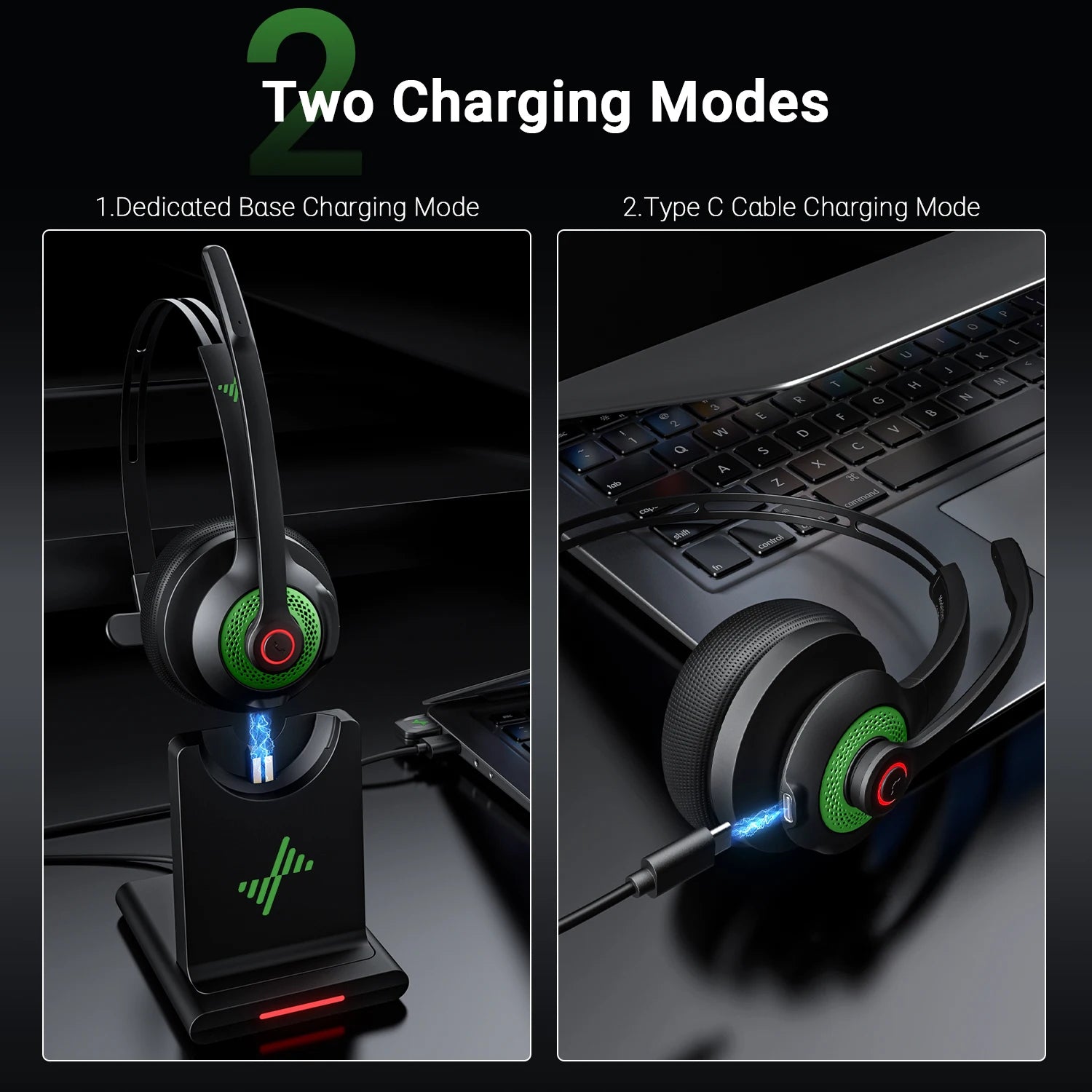 JIAMQISHI EH06 Bluetooth Wireless Headset with Mic for Work Call Center Headphones with USB Dongle Mute for PC/Computer/Laptop